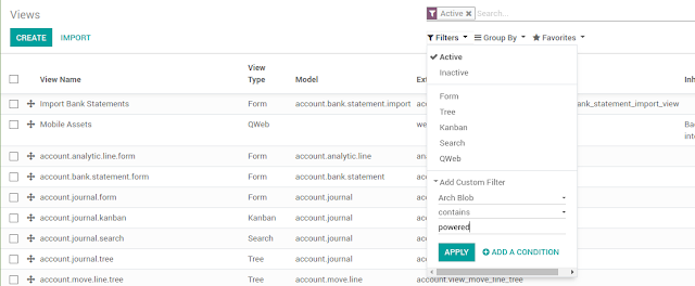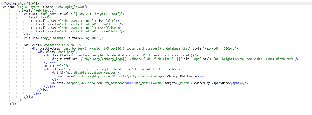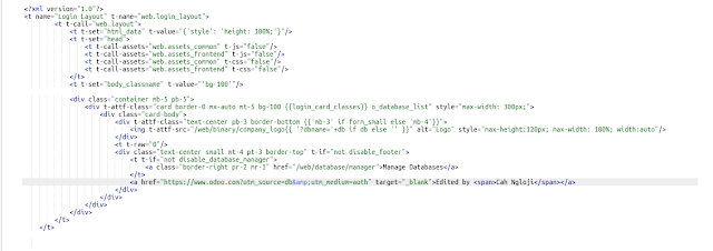 Odoo akan menampilkan semua kode view yang mengandung kata powered tentu saja pilih bagian yang ada hubungannya dengan Login saja. Silakan ubah secukupnya.